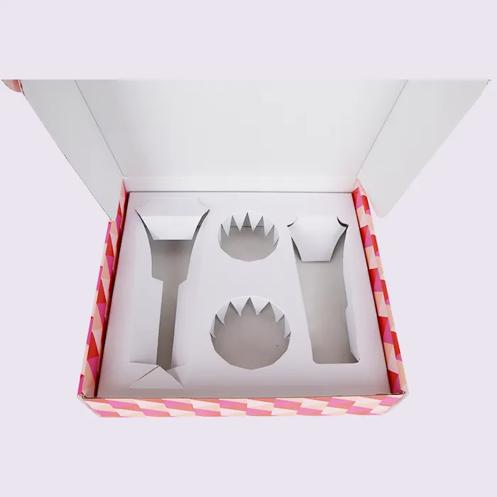 ສໍາລັບການໃສ່ບັນຈຸ, ພວກເຮົາໄດ້ພິຈາລະນາວັດສະດຸຈໍານວນຫນຶ່ງ: ເຈ້ຍ, ພາດສະຕິກ, ໂຟມ, ແລະ Insert molded ເປັນມິດກັບສິ່ງແວດລ້ອມ. ໃນທີ່ສຸດ, ພວກເຮົາເລືອກແຜ່ນໃສ່ເຈ້ຍທີ່ສາມາດຣີໄຊເຄີນໄດ້ດ້ວຍລາຄາຕໍ່າ, ໃຊ້ເວລາໃນການສົ່ງຄືນໄວ, ຄວາມລຽບງ່າຍ, ແລະເປັນມິດກັບສິ່ງແວດລ້ອມ, ທໍາມະຊາດທີ່ສາມາດຍ່ອຍສະຫຼາຍໄດ້. ການໃສ່ເຈ້ຍສໍາລັບກ່ອງຂົນສົ່ງການດູແລສ່ວນບຸກຄົນບໍ່ຈໍາເປັນຕ້ອງມີແມ່ພິມທີ່ກໍາຫນົດເອງ, ດັ່ງນັ້ນບໍ່ຈໍາເປັນຕ້ອງມີຄ່າບໍລິການ mold. ຜູ້ອອກແບບການຫຸ້ມຫໍ່ຂອງ Doyoupack ປັບຂະຫນາດໃຫ້ພໍດີກັບຂະຫນາດ, ຊ່ອງ, ແຖບ, ແລະລັກສະນະ interlocking ໂດຍອີງໃສ່ຕົວຢ່າງ, ແລະຫຼັງຈາກນັ້ນຜະລິດ insert ໂດຍຜ່ານການຕາຍ. ແຜ່ນໃສ່ກະດາດແມ່ນວັດສະດຸທີ່ເຮັດດ້ວຍລູກໜຶ້ງອັນດຽວ - ຄຸ້ມຄ່າ, ສາມາດຍ່ອຍສະຫຼາຍໄດ້, ແລະເປັນມິດກັບສິ່ງແວດລ້ອມສູງ. ມັນບໍ່ພຽງແຕ່ສະແດງໃຫ້ເຫັນຜະລິດຕະພັນໄດ້ດີແຕ່ຍັງສະຫນອງການສະຫນັບສະຫນູນແລະການປົກປ້ອງ. ສິ່ງທີ່ ສຳ ຄັນທີ່ສຸດ, ມັນຊ່ວຍຫຼຸດນ້ ຳ ໜັກ ໂດຍລວມຂອງຊຸດຜະລິດຕະພັນໄດ້ຢ່າງຫຼວງຫຼາຍເມື່ອປຽບທຽບກັບເຄື່ອງປັ້ນດິນເຜົາ, ແຜ່ນພາດສະຕິກ, ຫຼືກະດານສີຂີ້ເຖົ່າ. ກ່ອງໃສ່ລູກໜຶ້ງອັນດຽວ ແລະ ກ່ອງໃສ່ກະເປົ໋າ Personal Care ໜຶ່ງຊິ້ນຍັງອຳນວຍຄວາມສະດວກໃນການຂົນສົ່ງຮາບພຽງ.